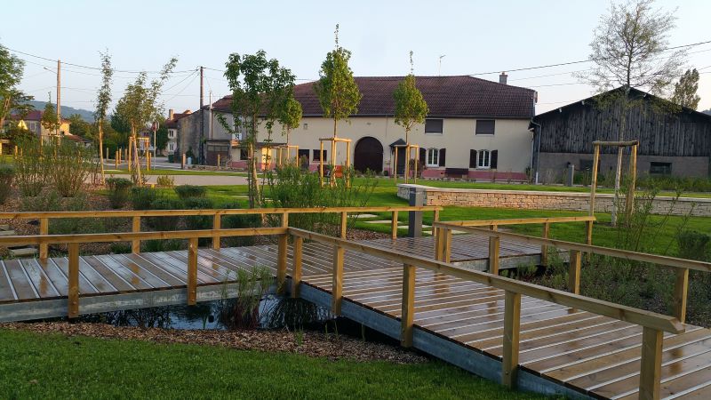 - Points remarquables : Projet frugal et vertueux adapté à l’échelle du lieu et remarquable pour un village de cette taille. Valorisation du patrimoine existant. Démonstration de désartificialisation des terres avec une enveloppe financière contrainte. Réalisation valorisant autant le patrimoine que la trame verte et bleue. Usage de matériaux locaux.