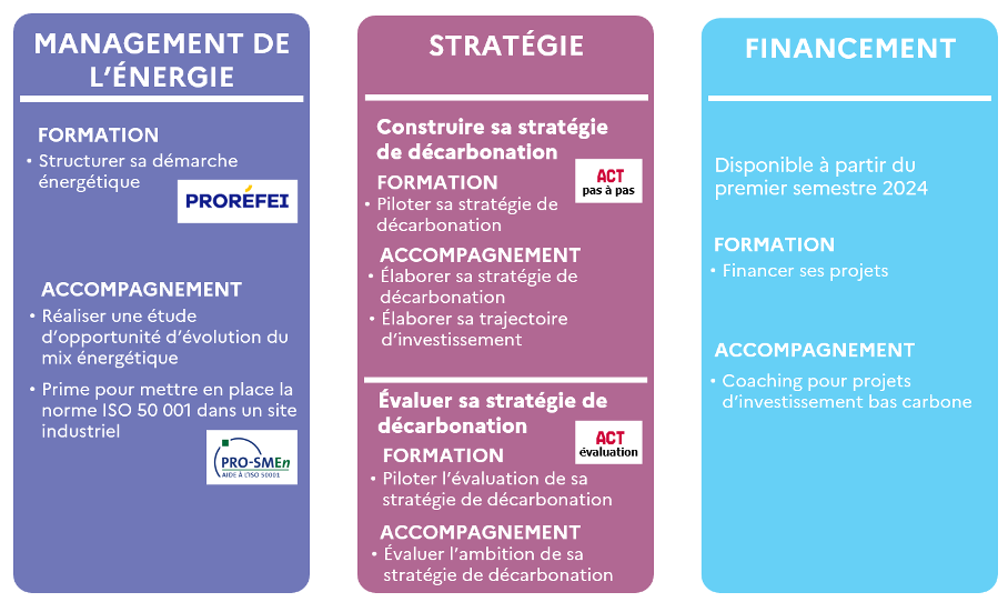 Ce PACTE Industrie propose aux industriels diverses formations et accompagnements pour trouver des solutions adaptées pour :