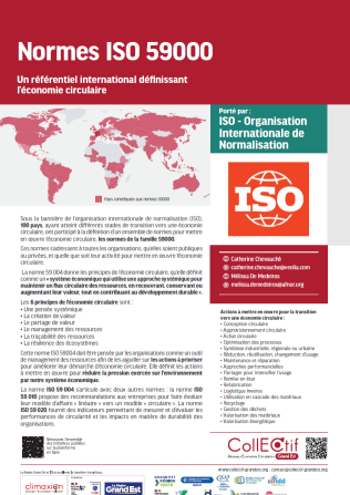 Sous la bannière de l’organisation internationale de normalisation (ISO), 100 pays, ayant atteint différents stades de transition vers une économie circulaire, ont participé à la défi nition d’un ensemble de normes pour mettre en œuvre l’économie circulaire, les normes de la famille 59000.